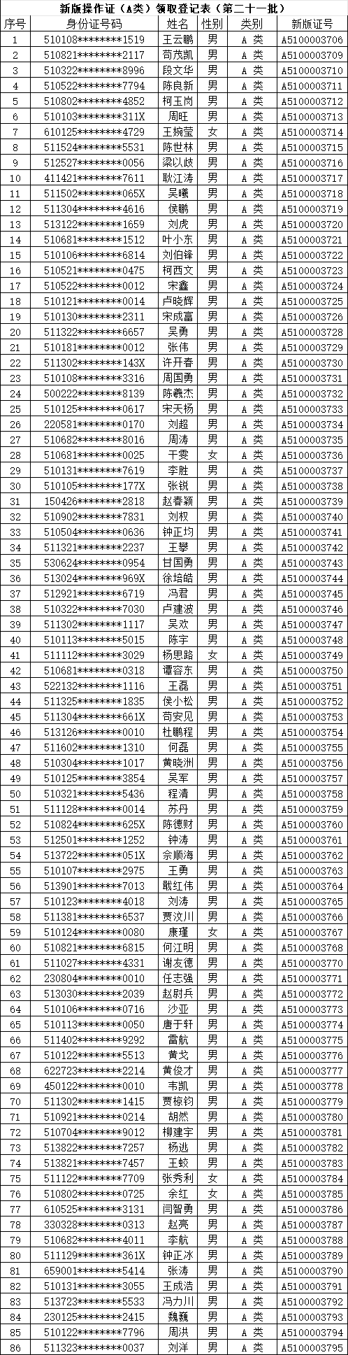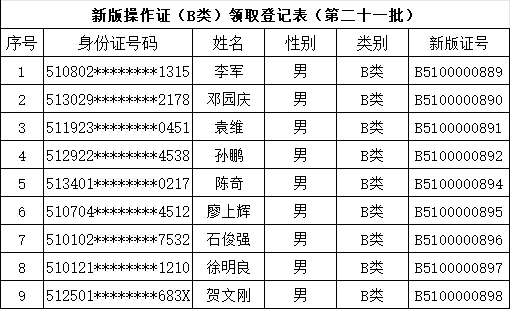 【转发】四川省业余无线电台新版A/B类操作证书换发(第二十一批)通过名单