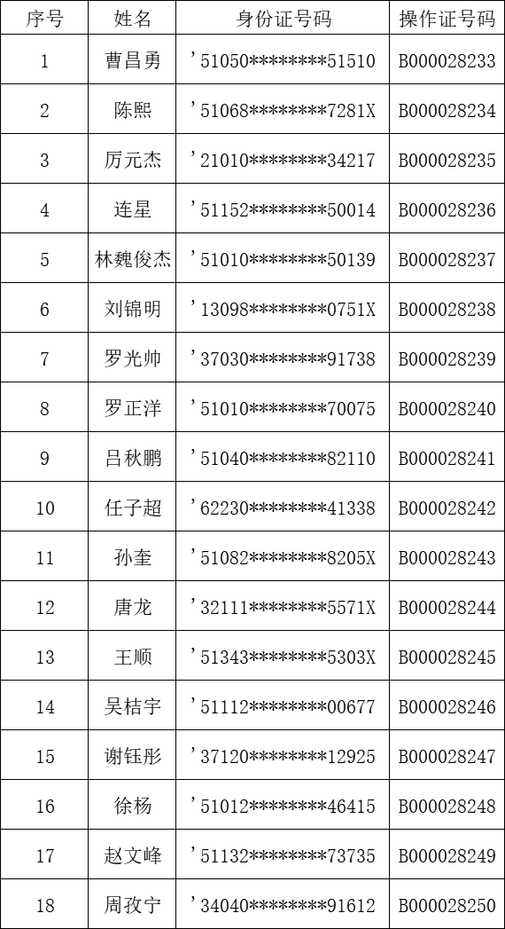 2023年8月19日成都A、B类考场操作证制证完毕,请提交地址统一邮寄