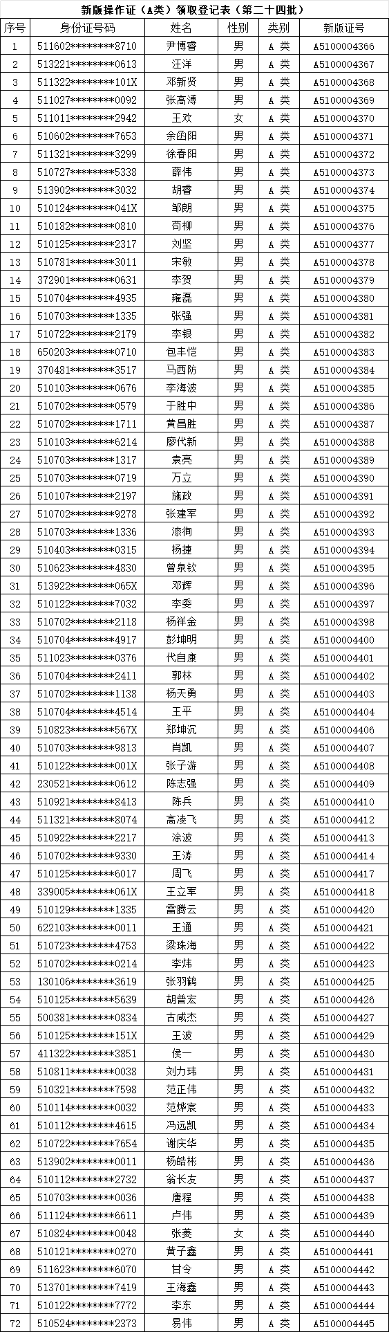 【转发】四川省业余无线电台新版A/B类操作证书换发(第二十四批)通过名单